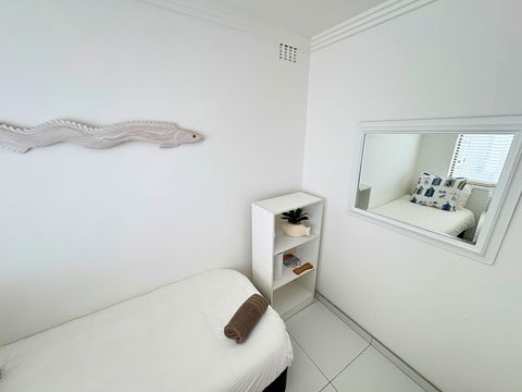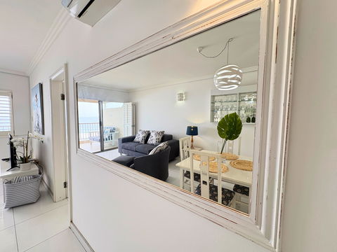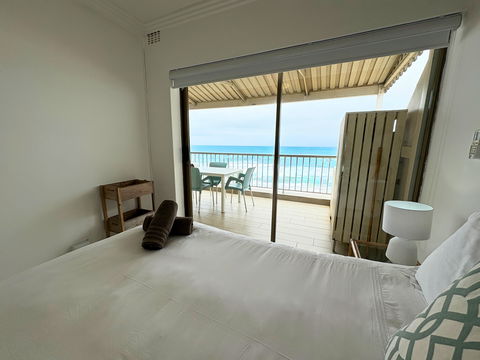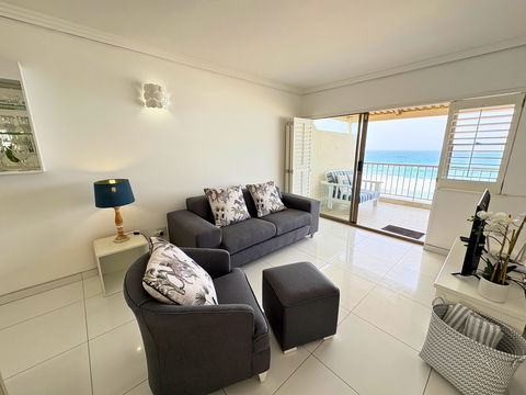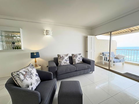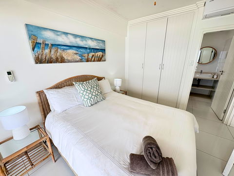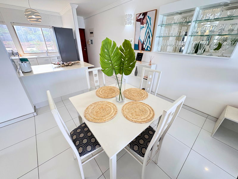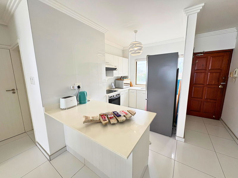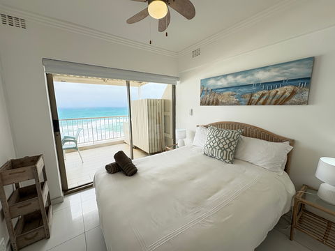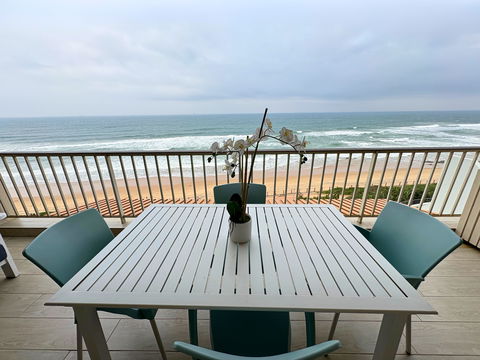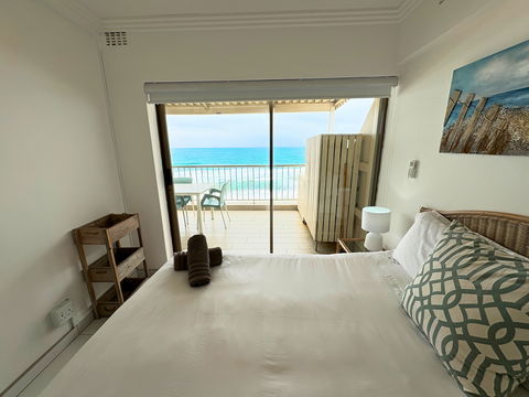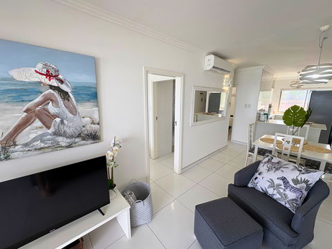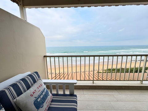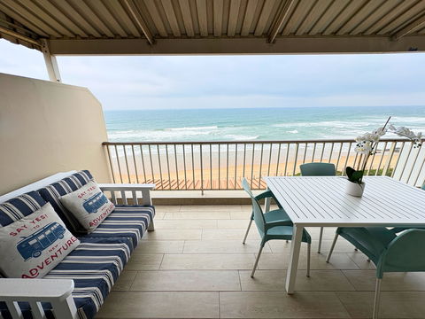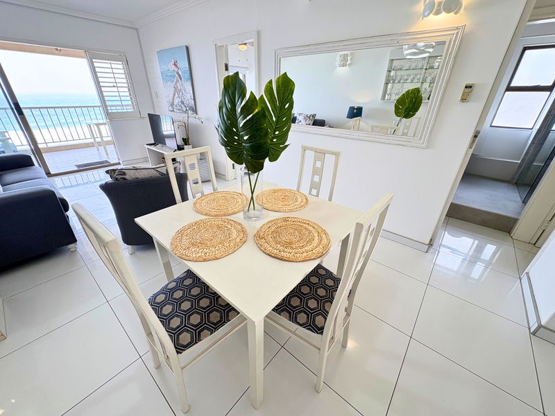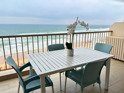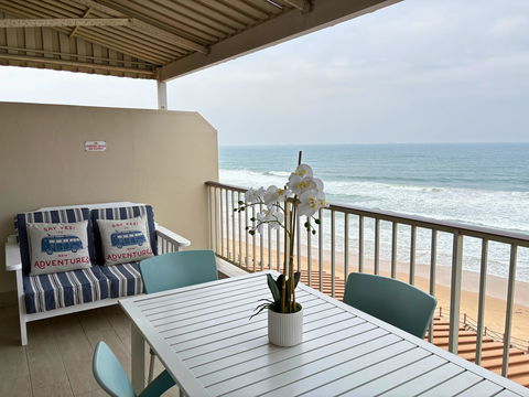 Recently upgraded 2-bedroom 2-bathroom beachfront apartment in Umhlanga, which sleeps 4 people. This unit has panoramic sea views, direct access to the promenade, and a patio area. Perfect for families, tourists, or work stays—steps away from the famous Bronze Beach.