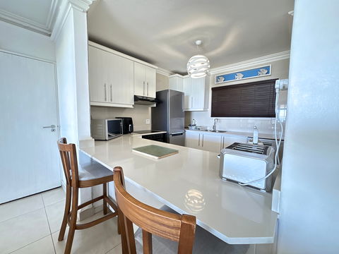 Beautiful 3-bedroom 2-bathroom beachfront apartment in Umhlanga, which sleeps 7. This unit has panoramic sea views, direct access to the promenade, and a luxurious garden balcony. Perfect for families, children, tourists, or work stays—steps away from the famous Bronze Beach.